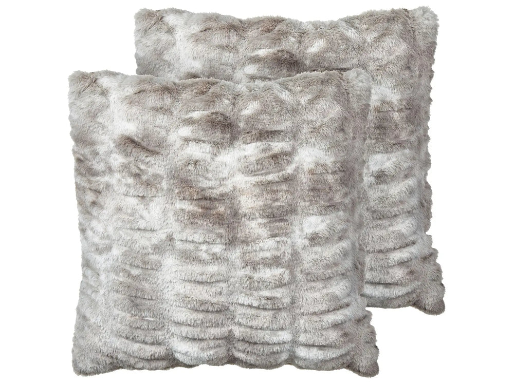Set of 2 Throw Pillows Grey Faux Fur 45 x 45 cm Soft Fluffy Scatter Cushions Beliani