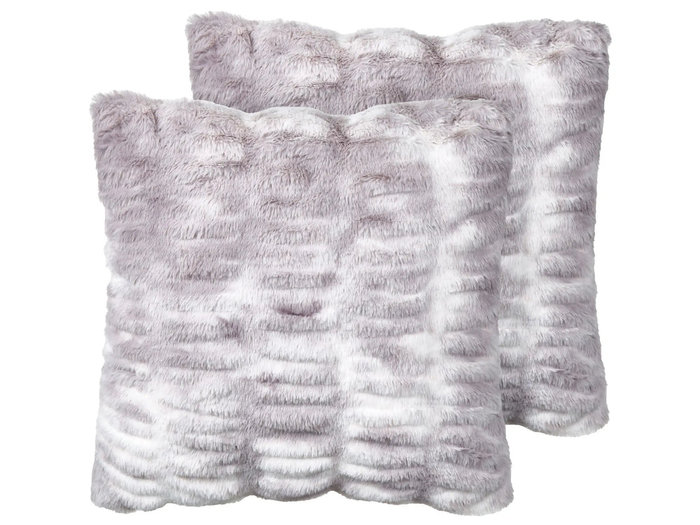 Set of 2 Throw Pillows Light Grey Faux Fur 45 x 45 cm Soft Fluffy Scatter Cushions Beliani