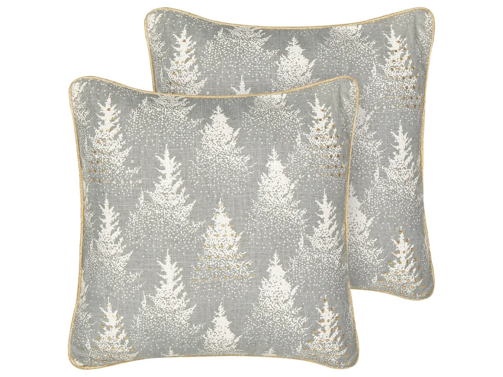 Set of 2 Scatter Cushions Grey 45 x 45 cm Christmas Tree Pattern Cotton Removable Covers Living Room Bedroom Beliani