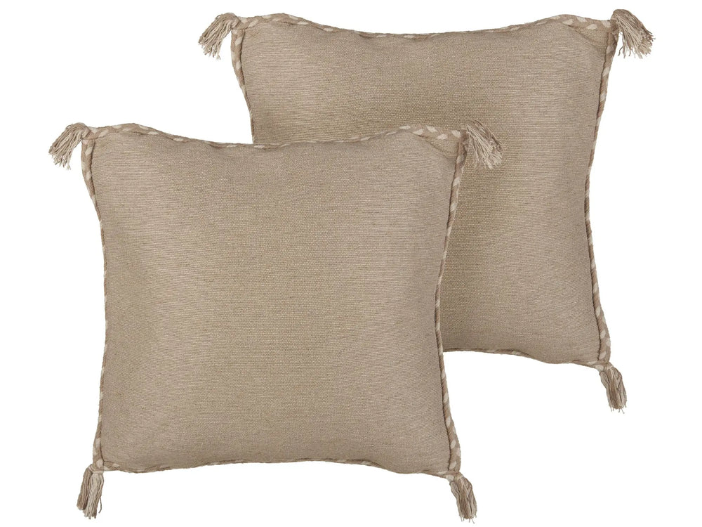 Set of 2 Decorative Cushions Beige Jute 45 x 45 cm Woven Removable with Zipper Decorative Tassels Boho Decor Accessories Beliani