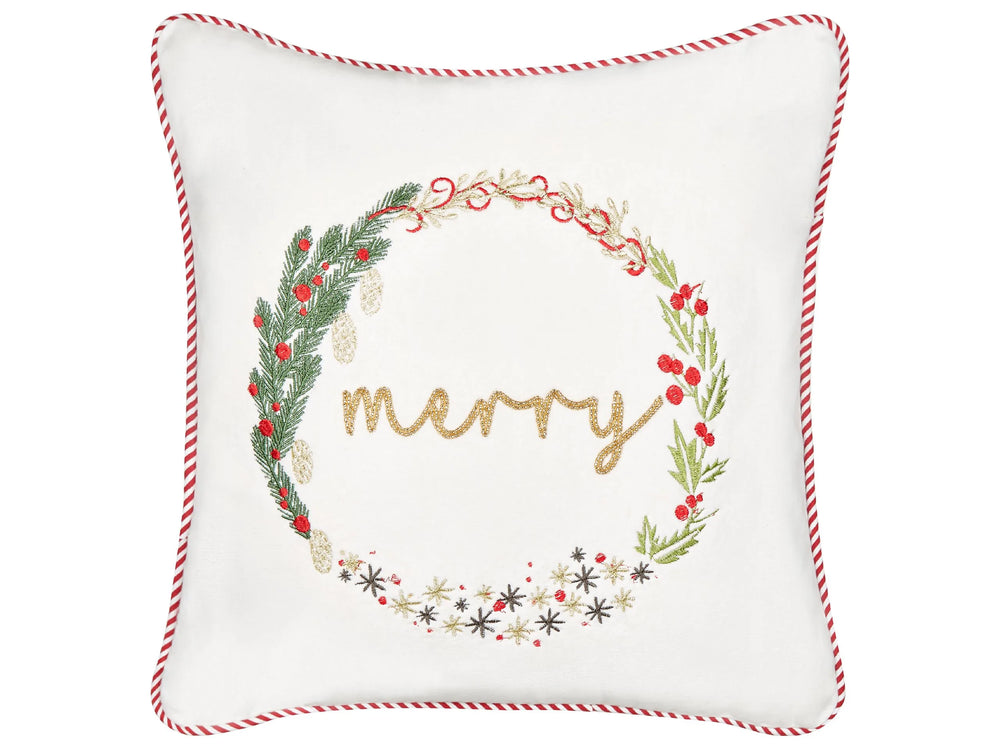Scatter Cushion White Velvet Fabric 45 x 45 cm Christmas Motif Cotton Removable Covers Living Room Bedroom Beliani