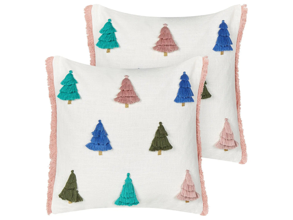 Set of 2 Scatter Cushions Multicolour Cotton 45 x 45 cm Christmas Motif Christmas Tree Print Accessories Festive Decor Beliani