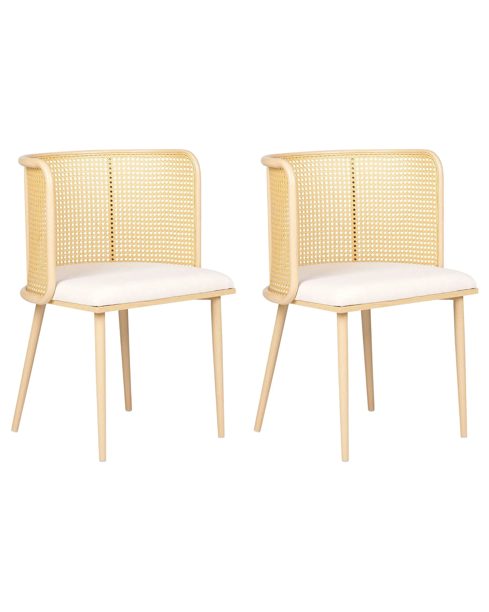 Set of 2 Dining Chairs Light Wood Effect Metal Frame Beige Fabric Seat Viennese Braid Backrest Retro Seating Beliani