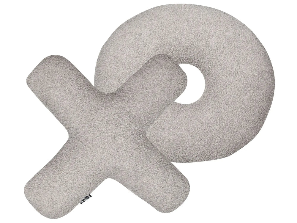 Set of 2 Letter Cushions Light Grey Teddy Fabric XO Throw Pillows Beliani