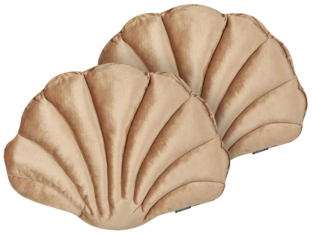 Set of 2 Seashell Scatter Cushions Beige Velvet Scallop Shape Throw Pillow Decoration Marine Theme Textiles Beliani