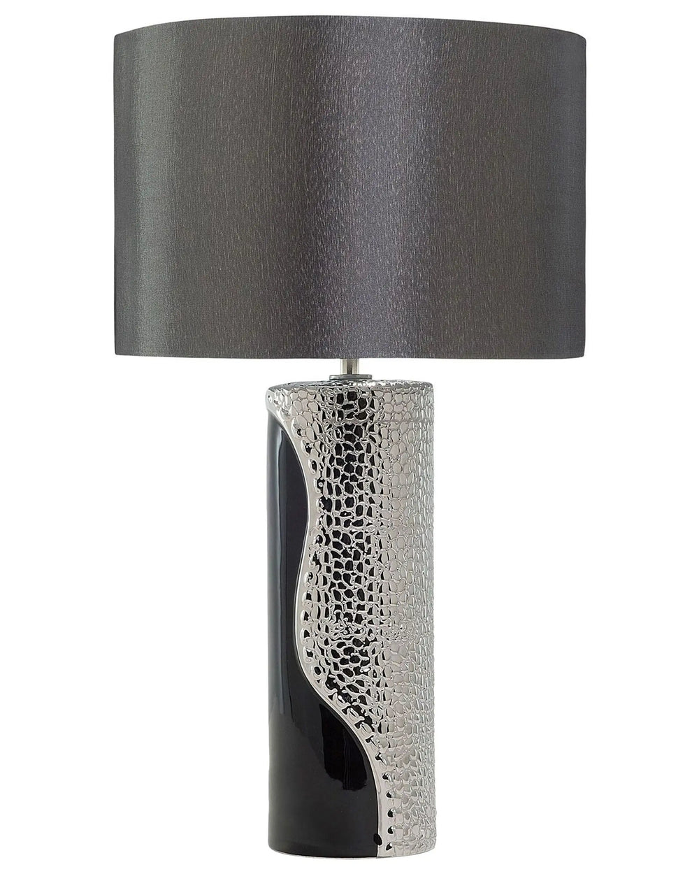 Table Lamp Silver Ceramic Pillar Base Faux Silk Drum Shade Bedside Table Lamp Beliani is backordered and will ship as soon as it is back in stock.
