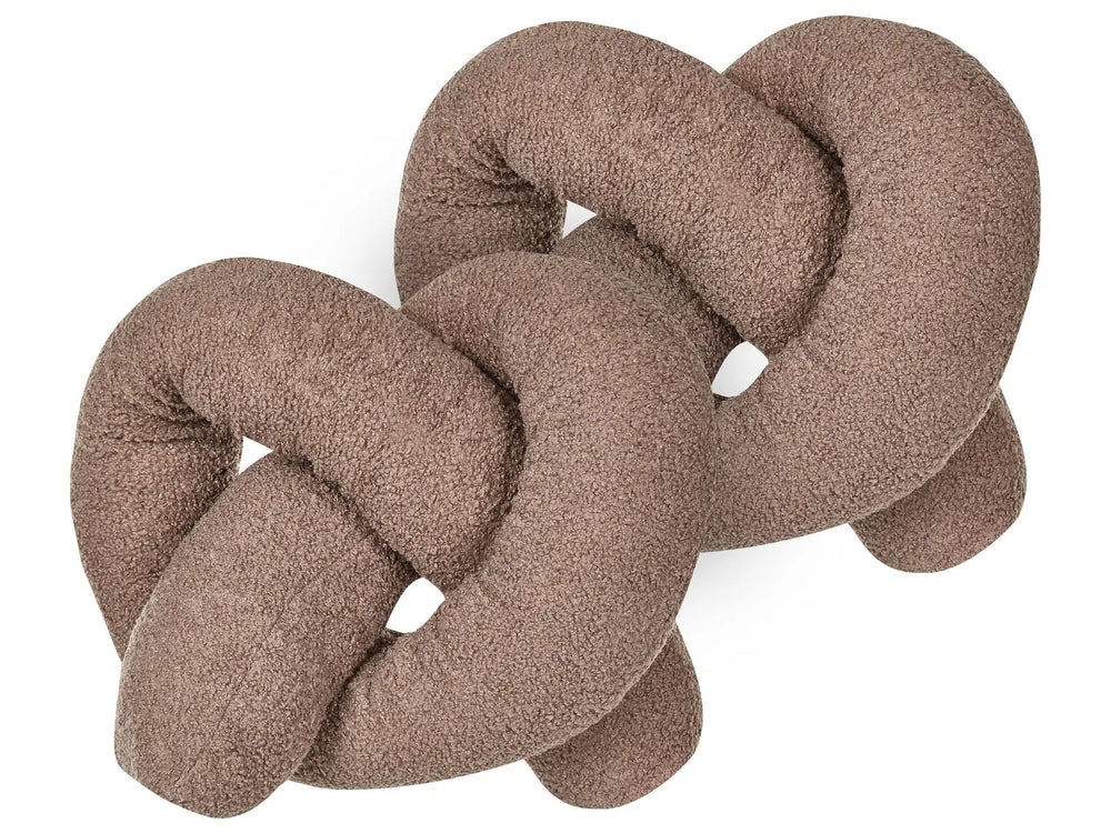 Set of 2 Cushions Brown 172 x 14 cm Teddy Fabric Throw Pillows Decorative Soft Filling Multiple Shapes Accessories Living Room Bedroom Beliani