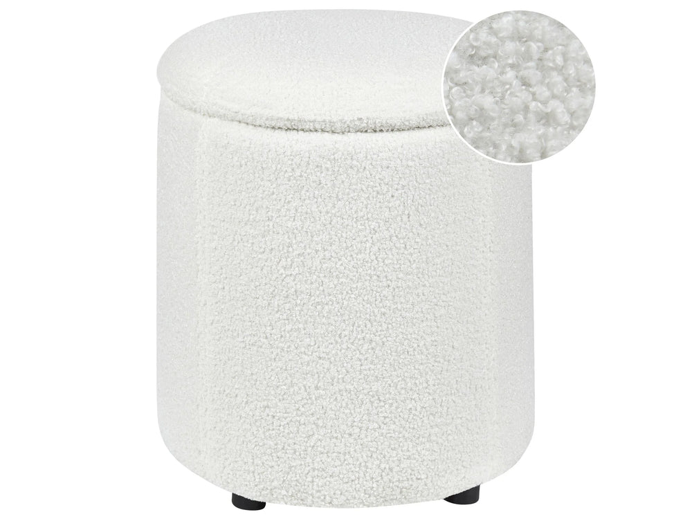 Pouffe Off-White Boucle 40 x 38 cm with Storage Stool Glamour Beliani