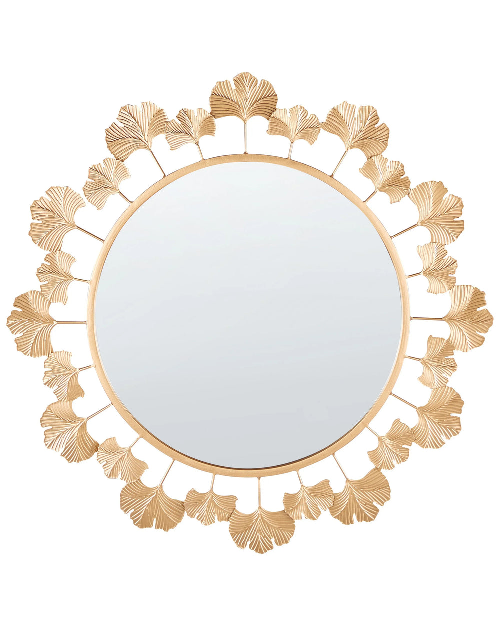 Accent Mirror Gold Metal Round 60 cm Gingko Tree Leaves Glamorous Living Room Bedroom Beliani