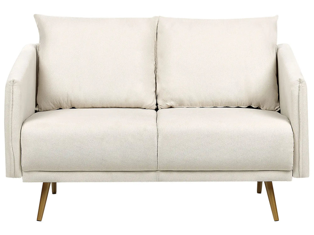 Sofa Beige Fabric 2 Seater Back Cushioned Seat Metal Golden Legs Retro Glam Beliani