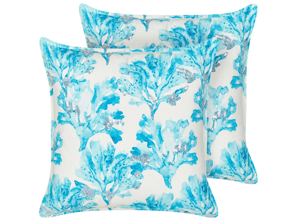 Set of 2 Scatter Cushions White and Blue Cotton 45 x 45 cm Marine Coral Pattern Square Polyester Filling Home Accessories Beliani is backordered and will ship as soon as it is back in stock.