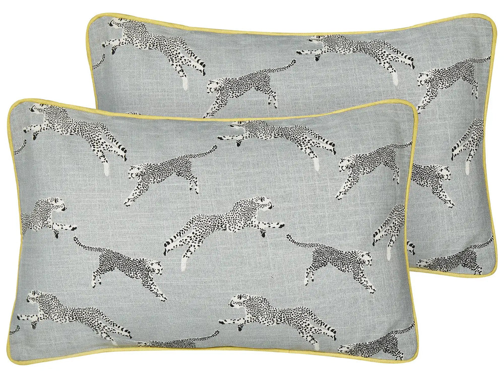 Set of 2 Scatter Cushions Grey Cotton 30 x 50 cm Cheetah Motif Printed Pattern Beliani