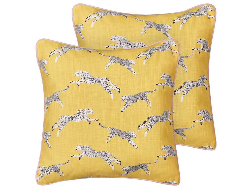 Set of 2 Scatter Cushions Yellow Cotton 45 x 45 cm Cheetah Motif Printed Pattern Beliani is backordered and will ship as soon as it is back in stock.