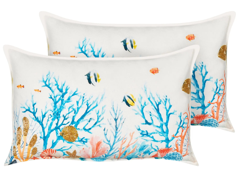 Set of 2 Scatter Cushions Multicolour Cotton 30 x 50 cm Marine Pattern Rectangular Polyester Filling Home Accessories Beliani