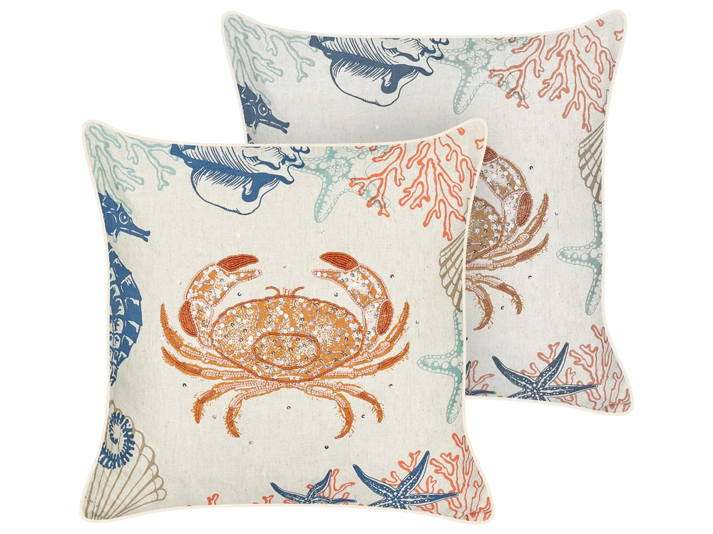 Set of 2 Scatter Cushions Beige Linen Cotton 45 x 45 cm Marine Crab Pattern Square Polyester Filling Home Accessories Beliani