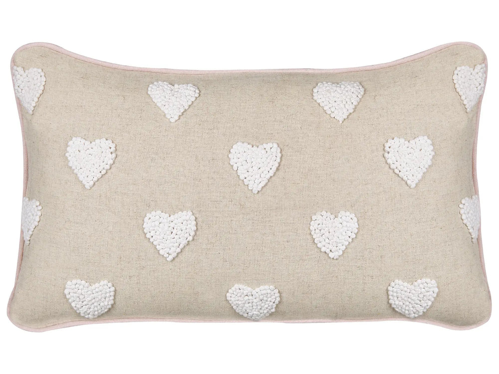 Scatter Cushion Beige Cotton 30 x 50 cm Throw Pillow Embroidered Hearts Pattern Beliani