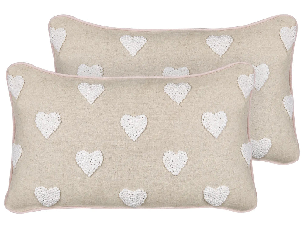 Set of 2 Scatter Cushions Beige Cotton 30 x 50 cm Embroidered Hearts Pattern Beliani