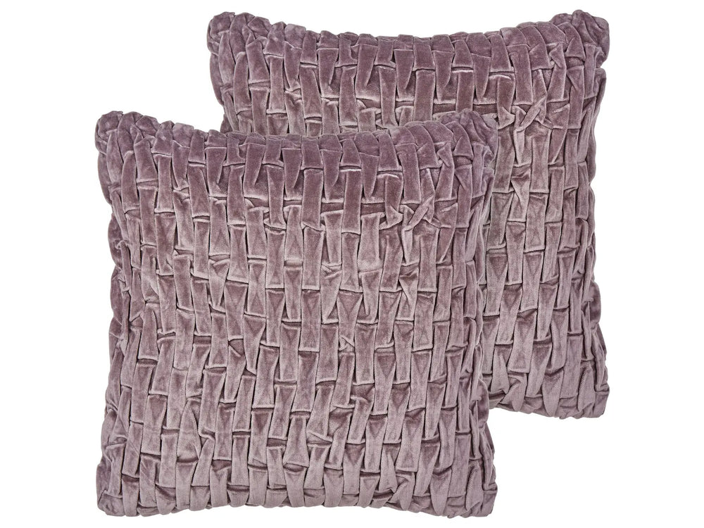 Set of 2 Decorative Cushions Violet Velvet 45 x 45 cm Modern Traditional Living Room Bedroom Pillow Beliani
