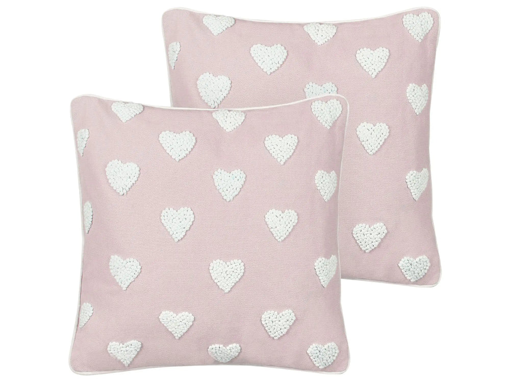Set of 2 Scatter Cushions Pink Cotton 45 x 45 cm Embroidered Hearts Pattern Beliani