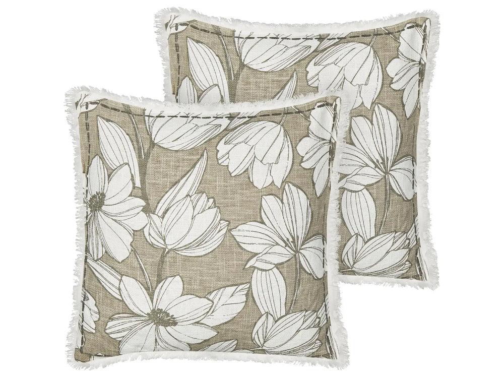 Set of 2 Scatter Cushions White and Green Cotton 45 x 45 cm Floral Pattern Fringed Handmade Removable Cover with Filling Boho Style Beliani is backordered and will ship as soon as it is back in stock.