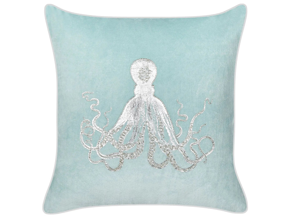 Scatter Cushion Blue Velvet 45 x 45 cm Marine Octopus Motif Square Polyester Filling Home Accessories Beliani