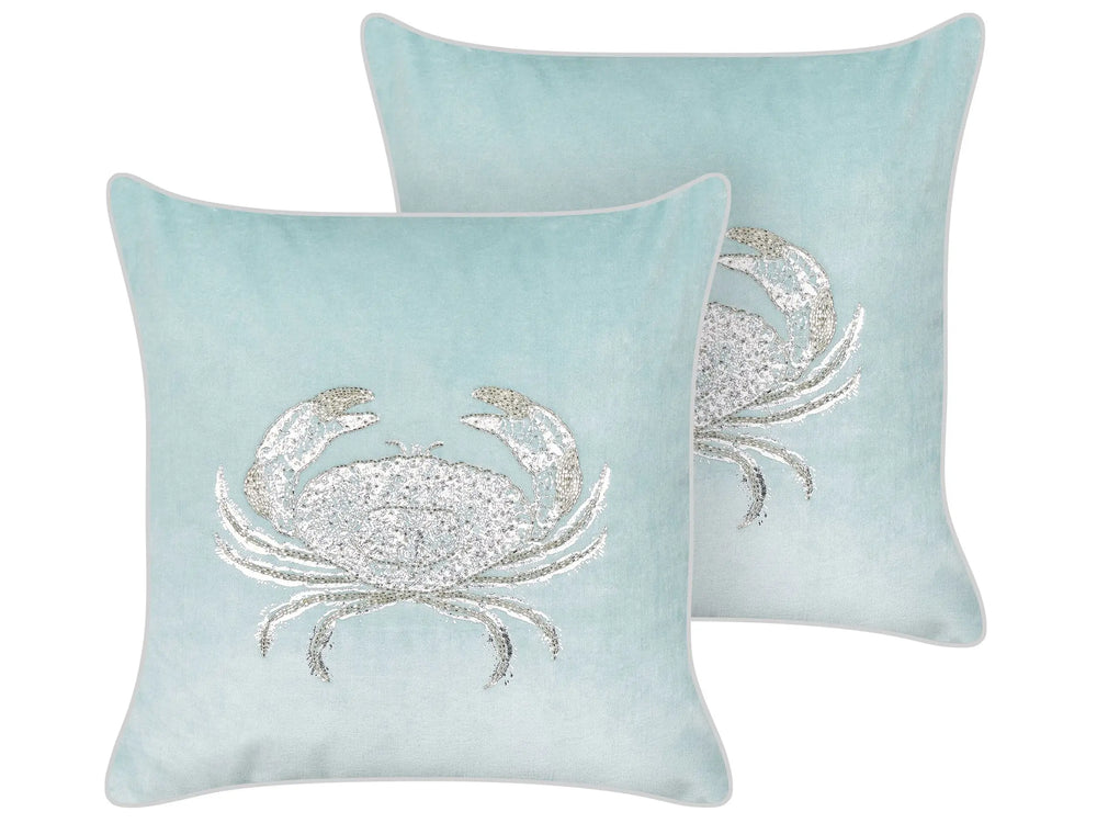 Set of 2 Scatter Cushions Blue Velvet 45 x 45 cm Marine Crab Motif Square Polyester Filling Home Accessories Beliani
