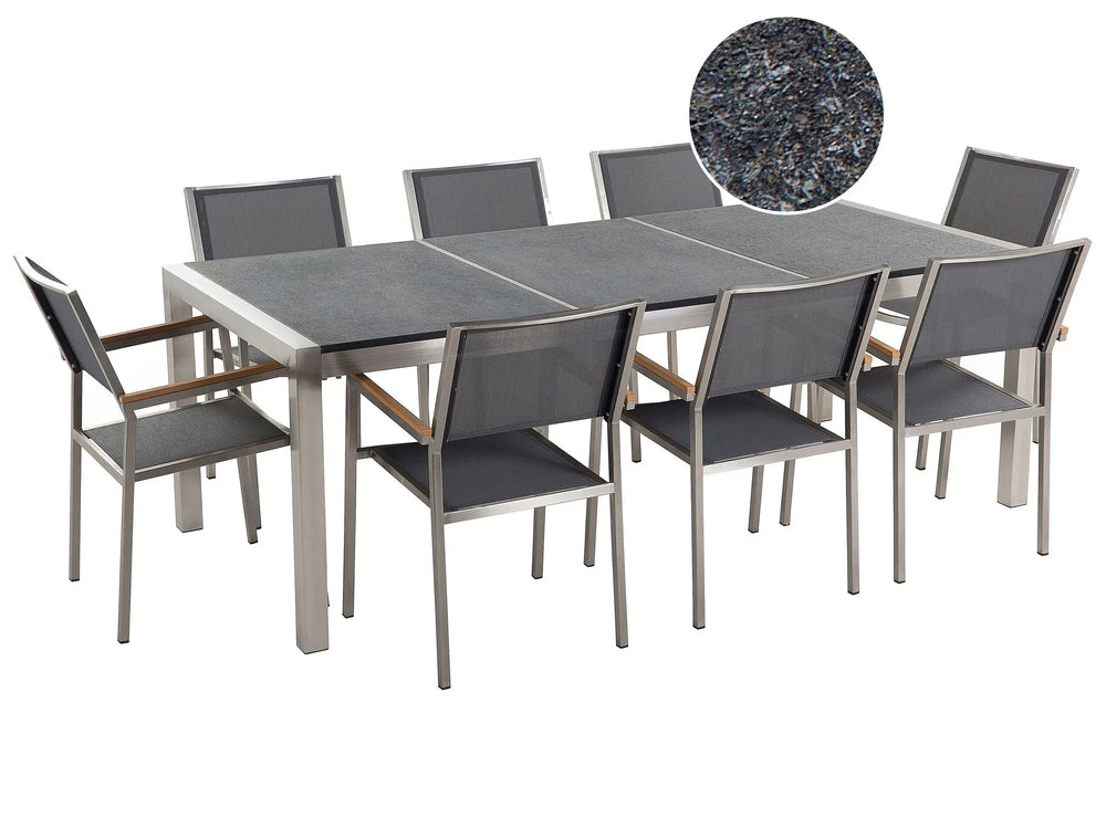 Garden Dining Set Grey with Flamed Granite Table Top 8 Seats 220 x 100 cm Beliani