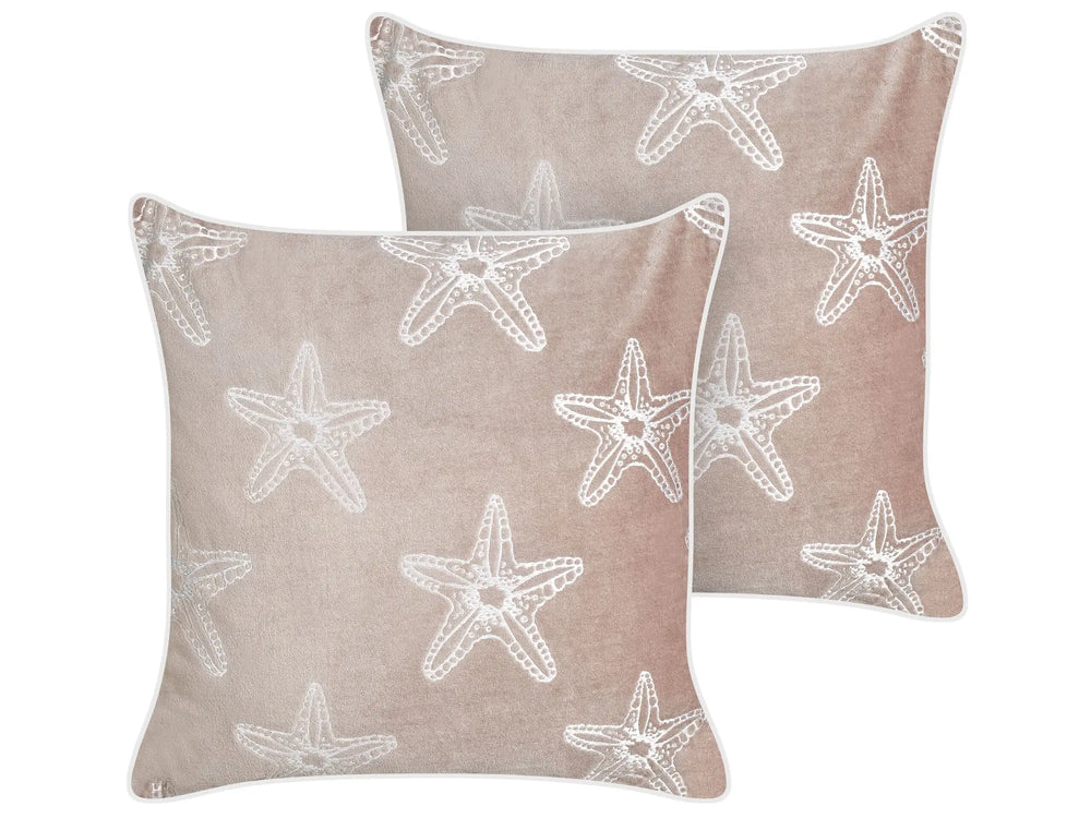 Set of 2 Scatter Cushions Pink Velvet 45 x 45 cm Marine Starfish Motif Square Polyester Filling Home Accessories Beliani
