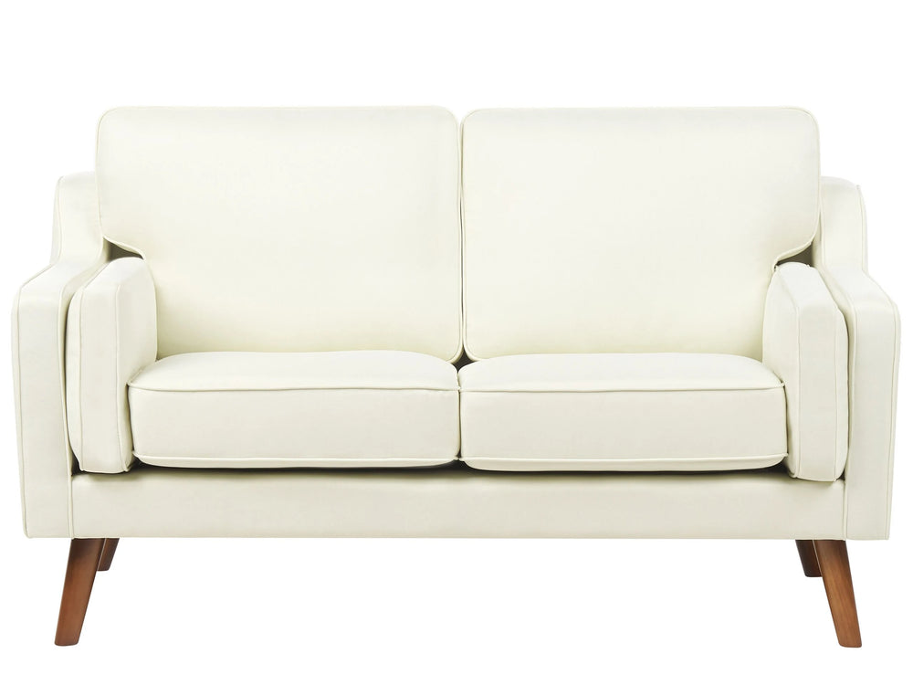 2 Seater Sofa Off-White Fabric Oak Wood Legs Classic Mid-Century Living Room Beliani