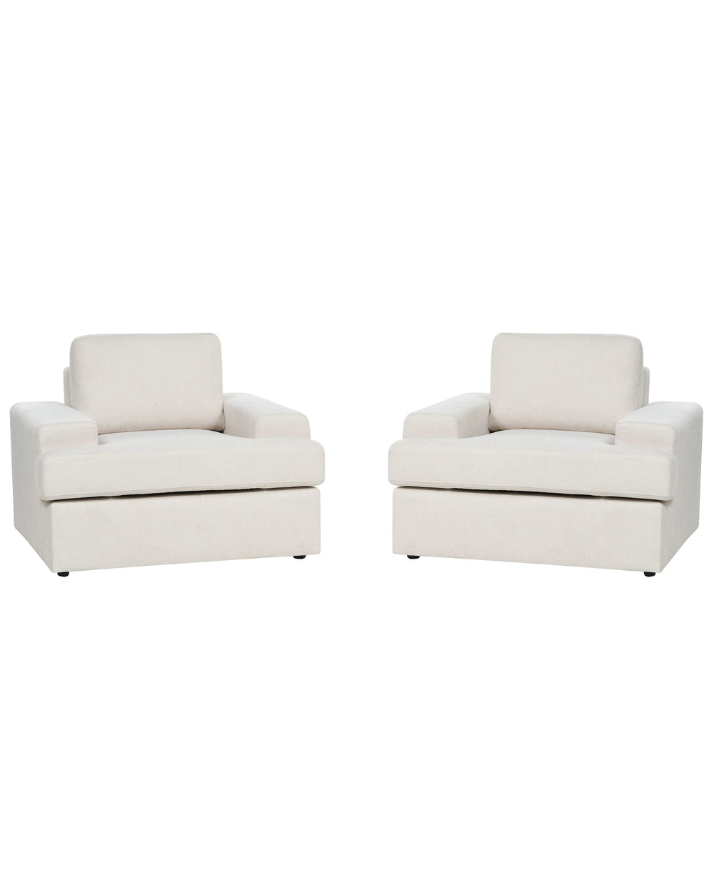 Set of 2 Armchairs Light Beige Fabric Upholstered Cushioned Thickly Padded Backrest Classic Living Room Couch Beliani