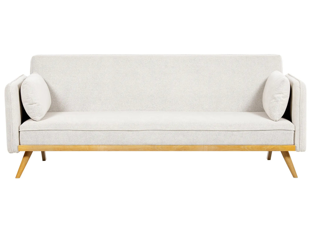 Sofa Bed Off-White Fabric Upholstered 3 Seater Click Clack Bed Wooden Frame Legs Armrests Living Room Traditional Beliani
