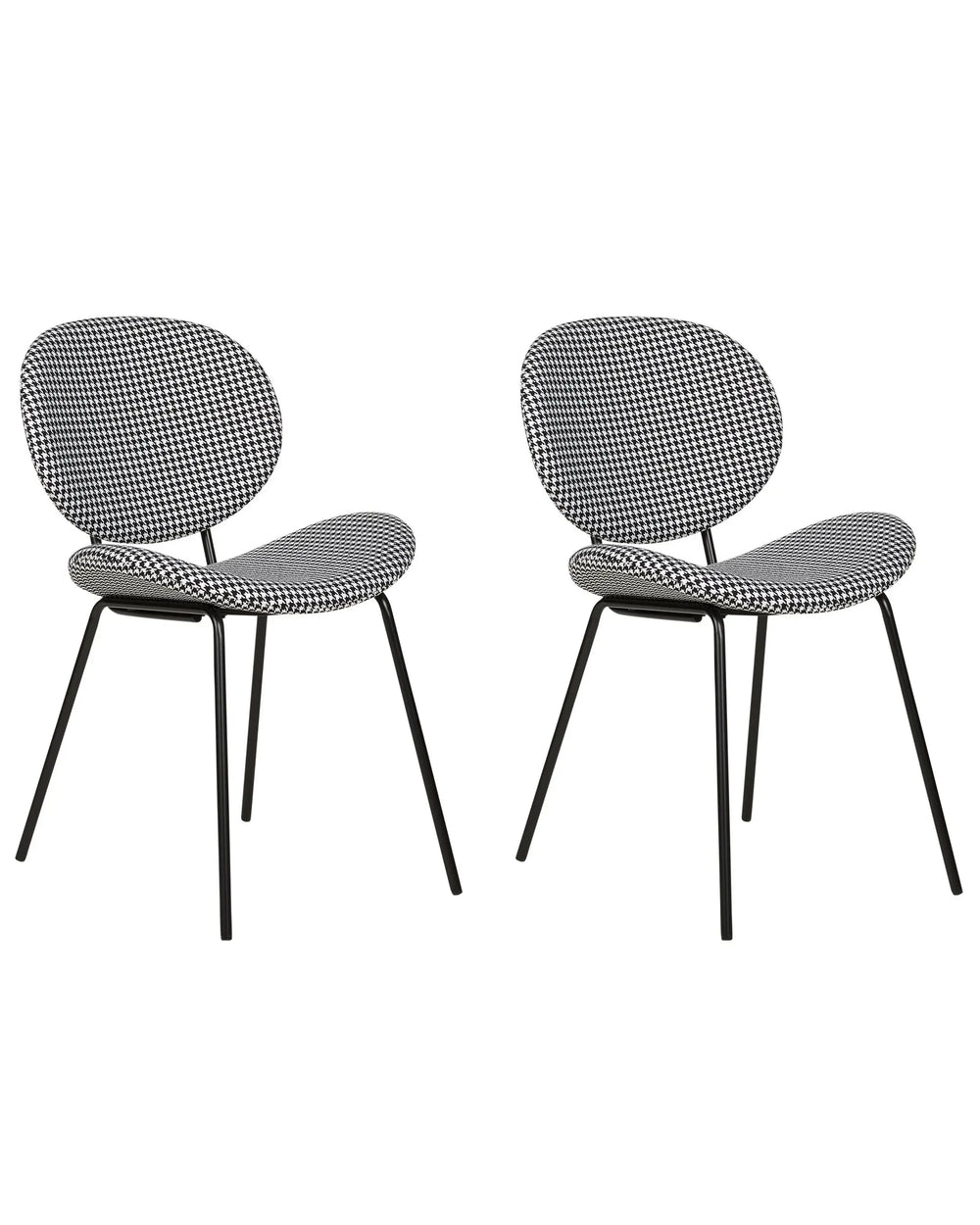 Set of 2 Dining Chairs Black and White Fabric Houndstooth Leg Caps Black Iron Legs Contemporary Retro Design Dining Room Seating Beliani is backordered and will ship as soon as it is back in stock.