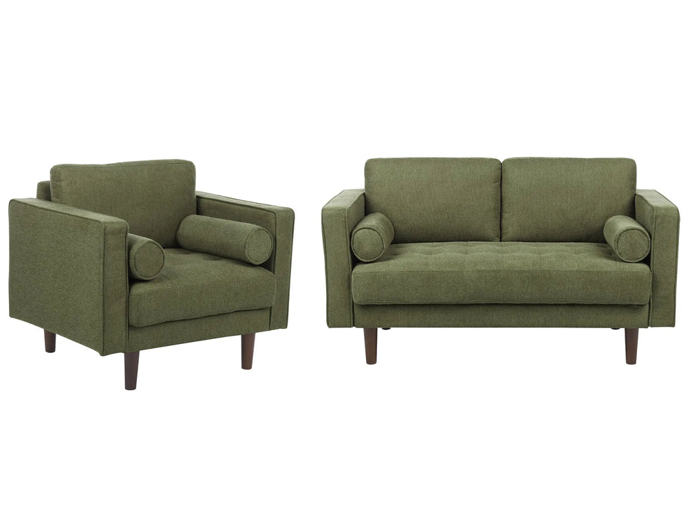 Sofa Set Green Fabric Upholstered 2 Seater with Armchair Cushioned Thickly Padded Backrest Classic Retro Design Living Room Beliani