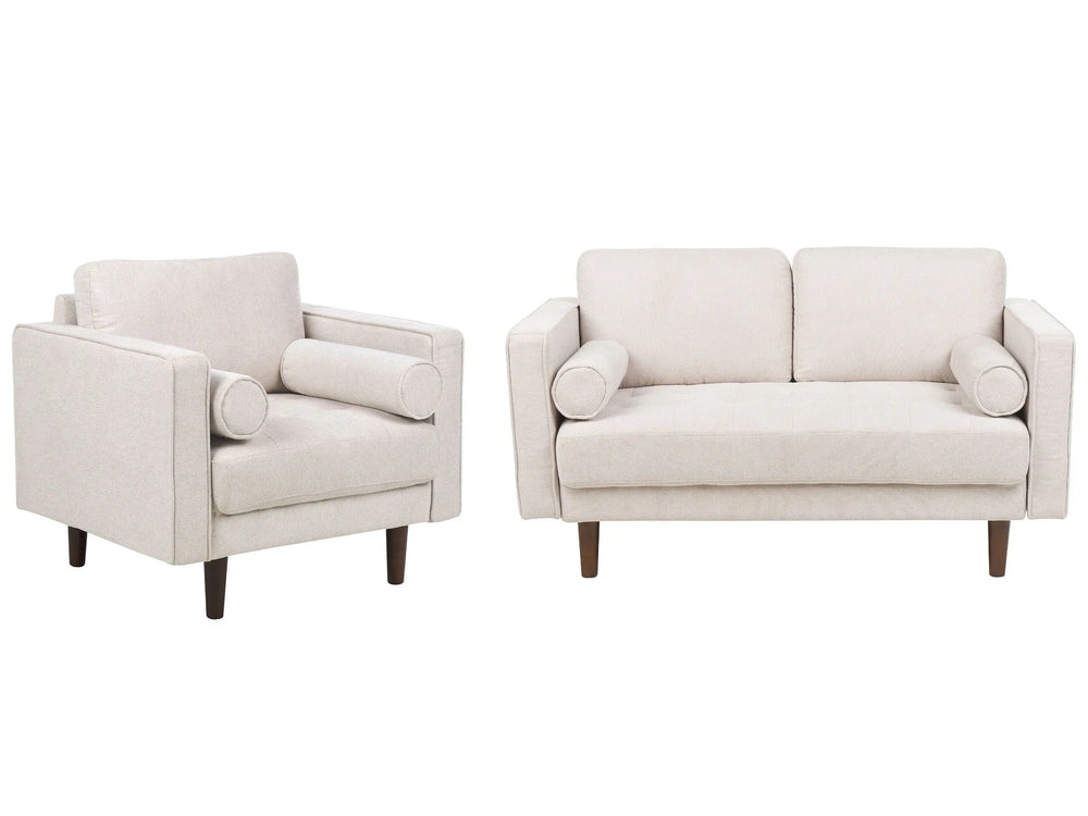 Sofa Set Beige Fabric Upholstered 2 Seater with Armchair Cushioned Thickly Padded Backrest Classic Retro Design Living Room Beliani