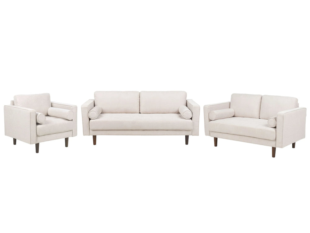 Sofa Set Beige Fabric Upholstered 2+3 Seater with Armchair Cushioned Thickly Padded Backrest Classic Retro Design Living Room Beliani