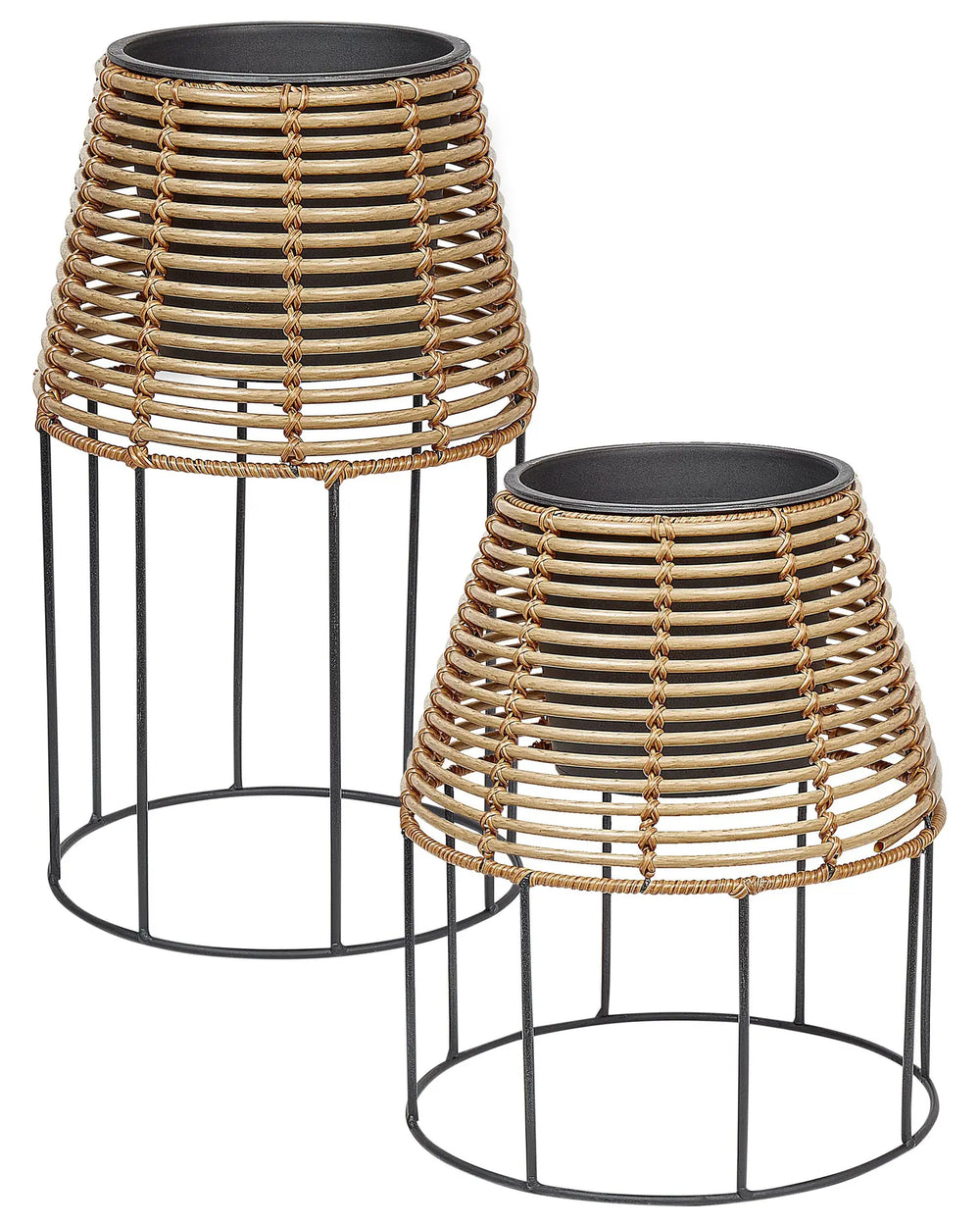 Set of 2 Plant Pot Stands Brown PE Rattan Round Indoor Outdoor with plastic insert Beliani