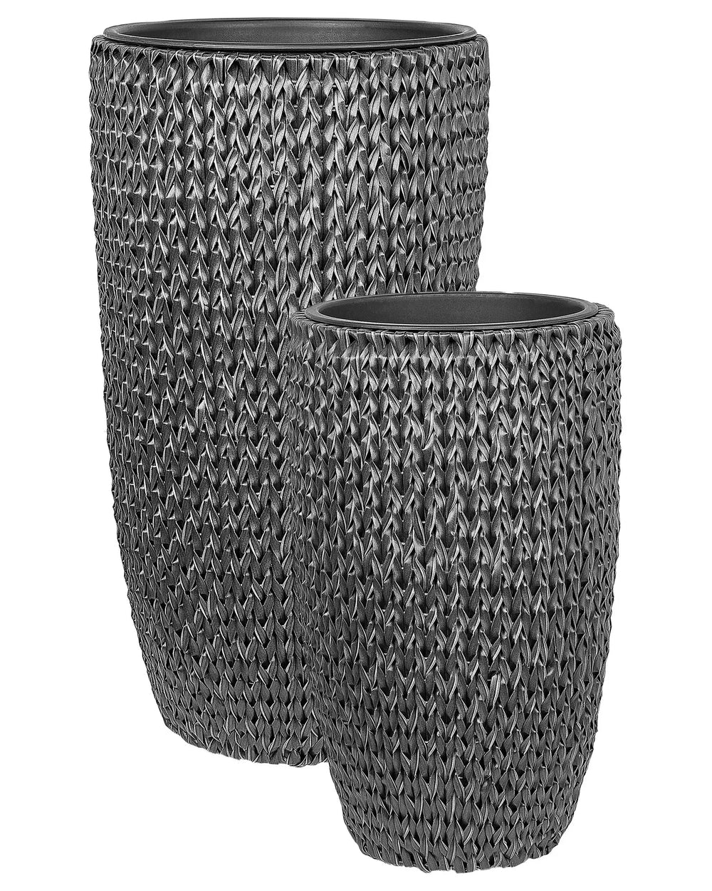 Set of 2 Plant Pots Black PE Rattan Round Indoor Outdoor with Plastic Insert Beliani