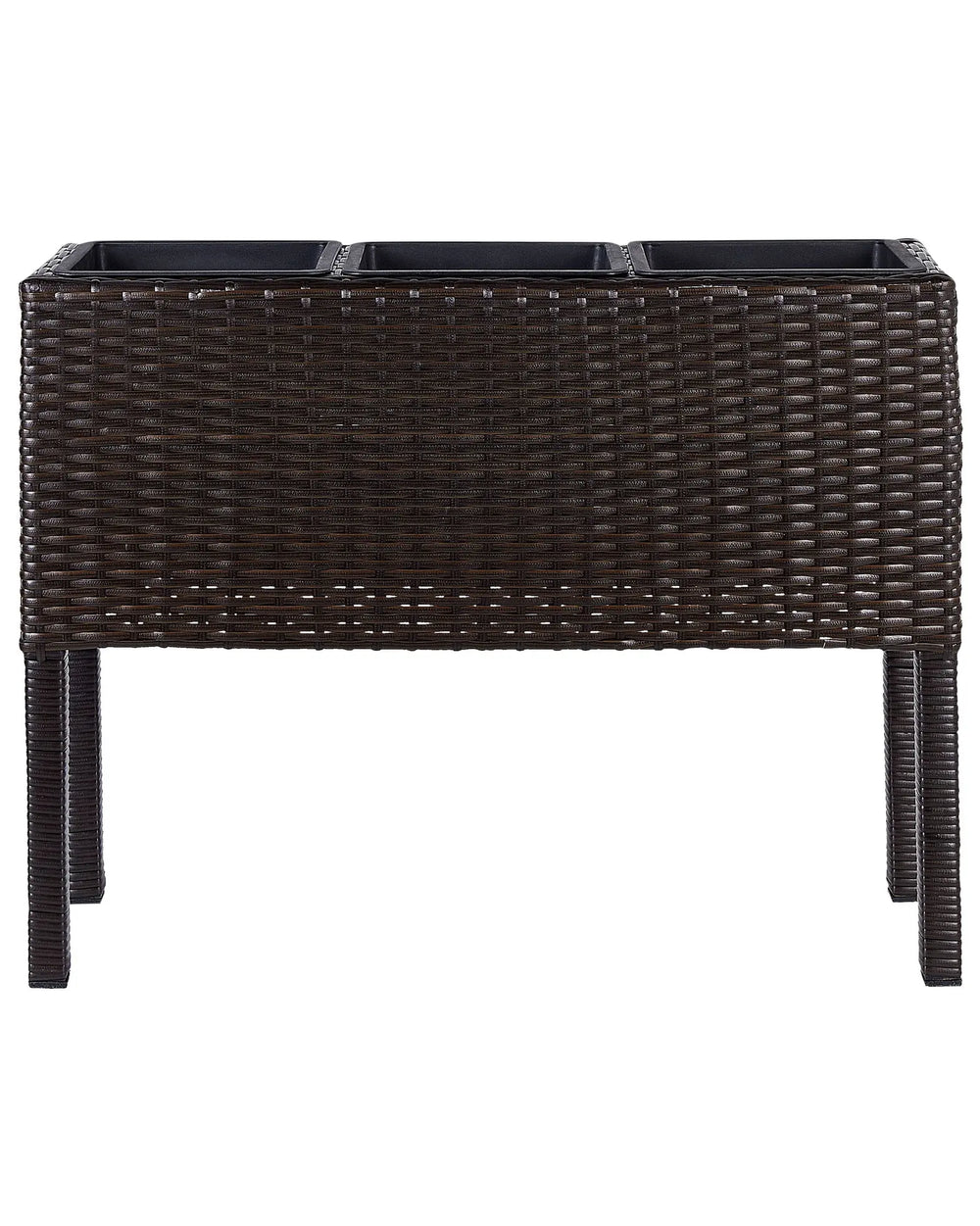 Raised Planter Box Brown PE Rattan Round Indoor Outdoor Garden Bed with 3 Inserts Beliani