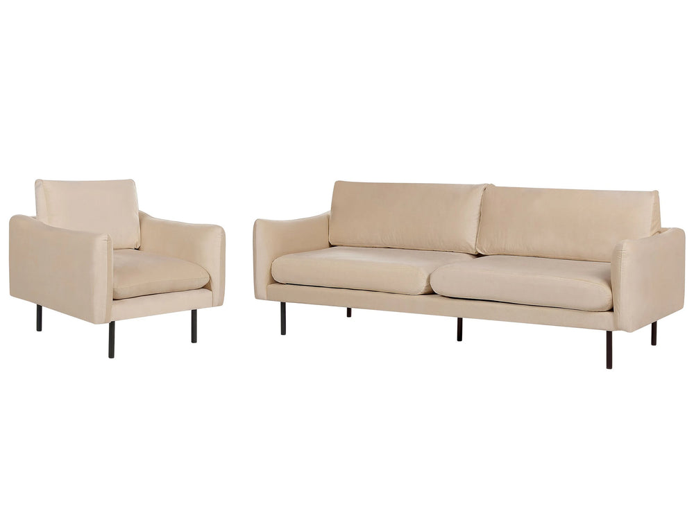 Living Room Set Beige Velvet Fabric Black Legs Corner Sofa 3 Seater Armchair Modern Retro Style Beliani is backordered and will ship as soon as it is back in stock.