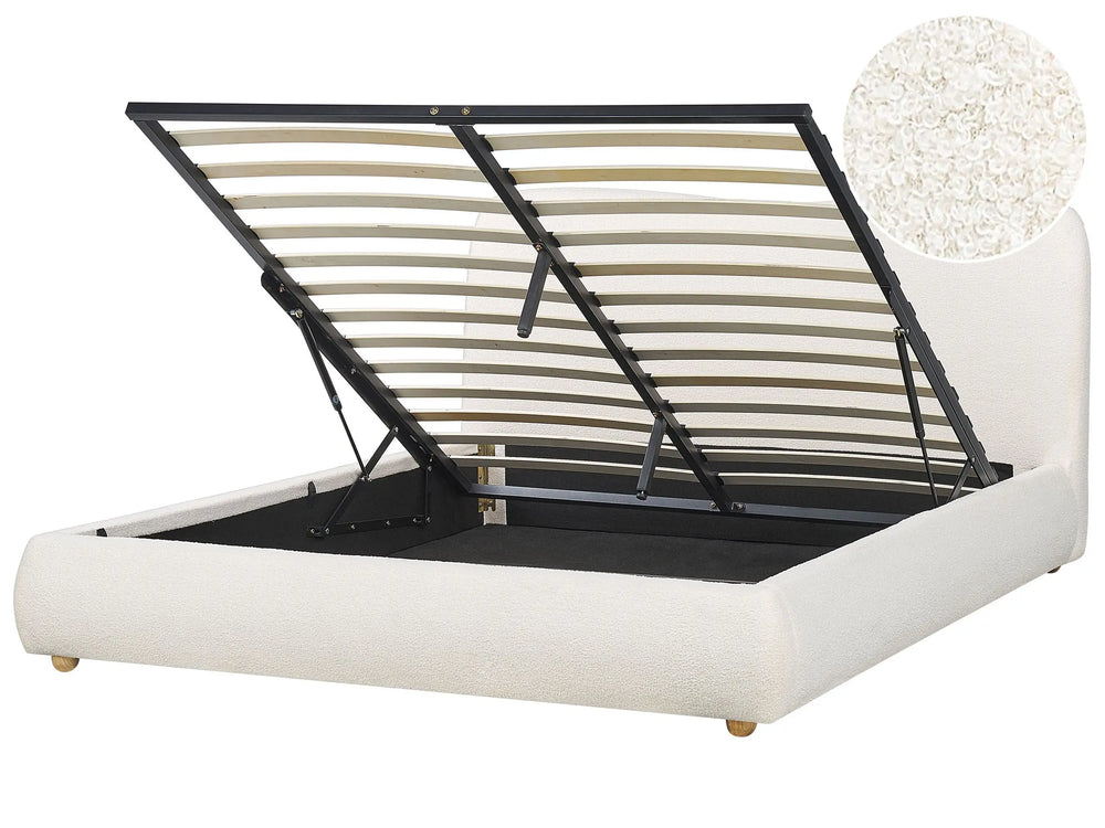 Storage Bed White Boucle Polyester Fabric EU King Size 5ft3 Minimalist Modern Design Ottoman Storage Beliani