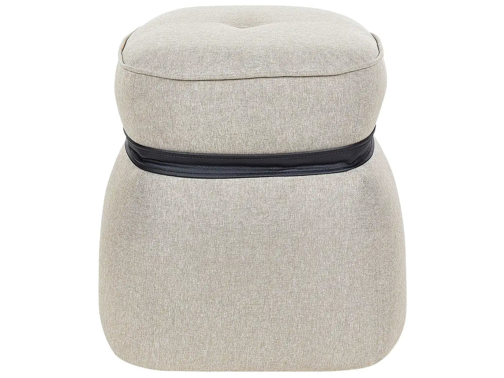 Pouffe Beige Linen Round 45 x 45 x 44 cm Footstool Accent Upholstery Modern Living Room Bedroom Furniture Beliani