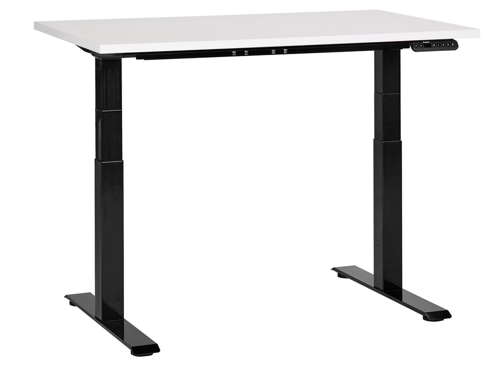 Electrically Adjustable Desk White Tabletop Black Steel Frame 120 x 72 cm Sit and Stand Square Feet Modern Design Beliani