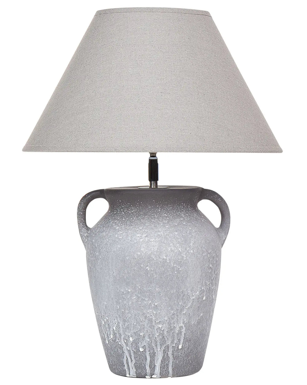 Table Lamp Grey Ceramic Base Linen Adjustable Cone Shade Modern Minimalistic Design Living Room Bedroom Beliani