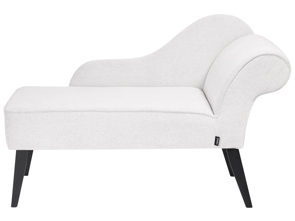 Chaise Lounge White Polyester Fabric Upholstery Black Wood Legs Right Hand Retro Design Beliani is backordered and will ship as soon as it is back in stock.