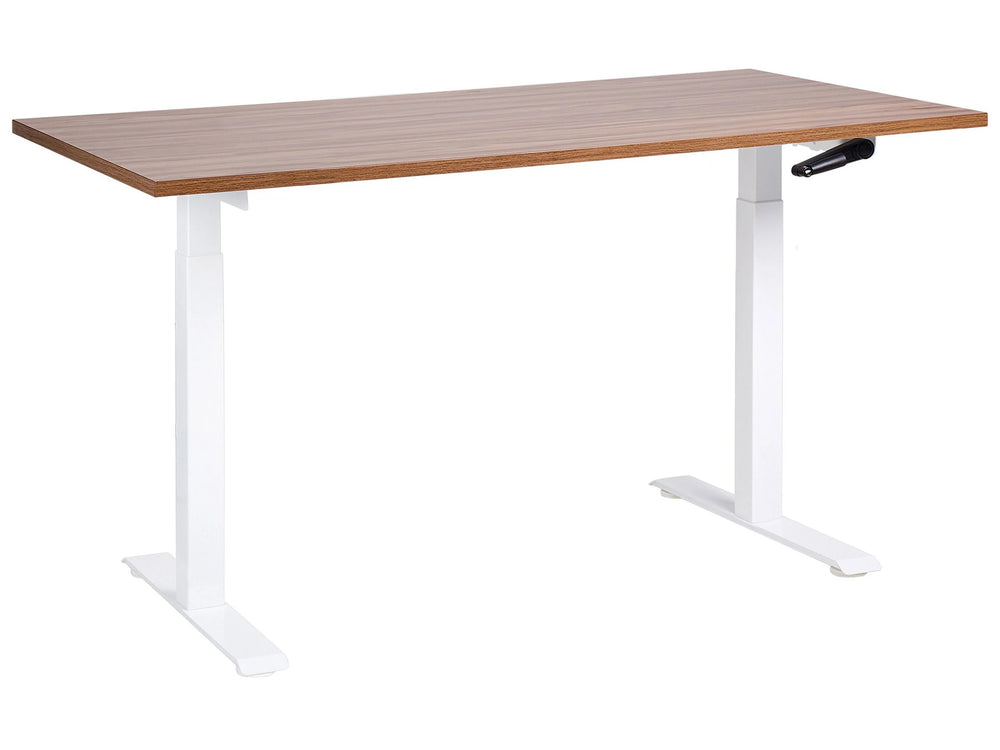 Manually Adjustable Desk Dark Wood Tabletop White Steel Frame 160 x 72 cm Sit and Stand Square Feet Modern Design Office Beliani is backordered and will ship as soon as it is back in stock.