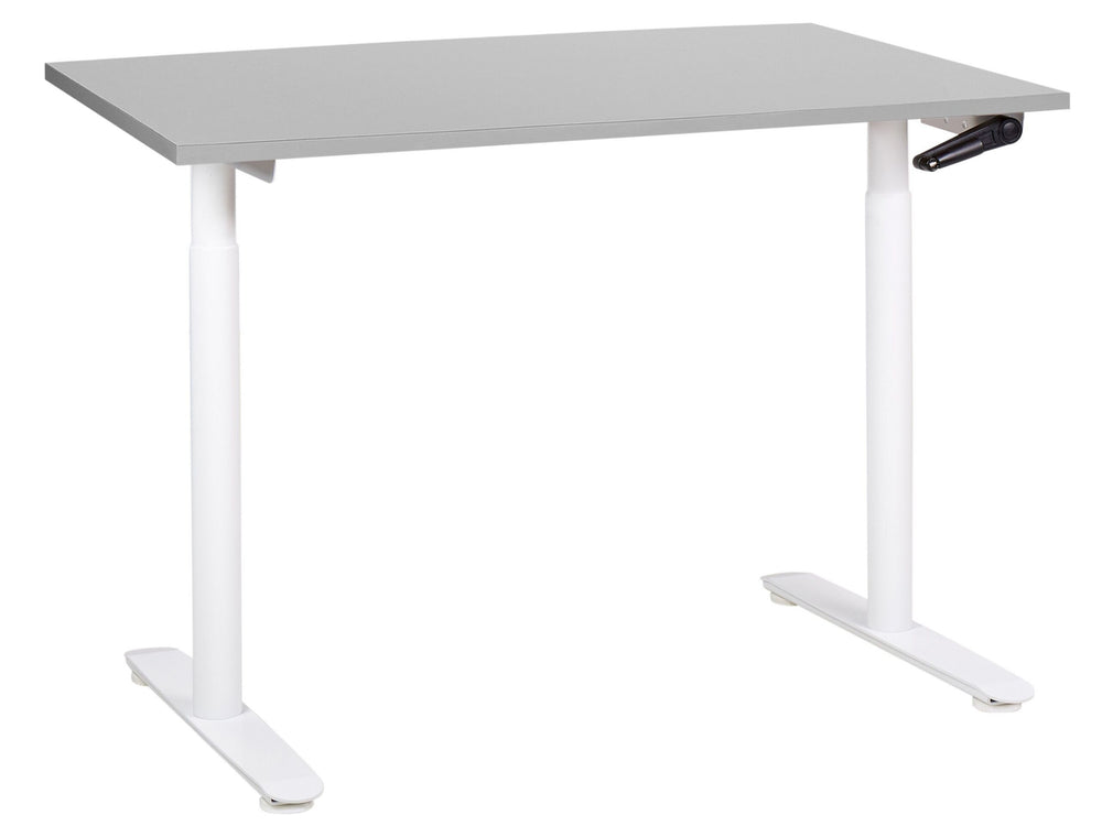 Manually Adjustable Desk Grey Tabletop White Steel Frame 120 x 72 cm Sit and Stand Round Feet Modern Design Office Beliani is backordered and will ship as soon as it is back in stock.