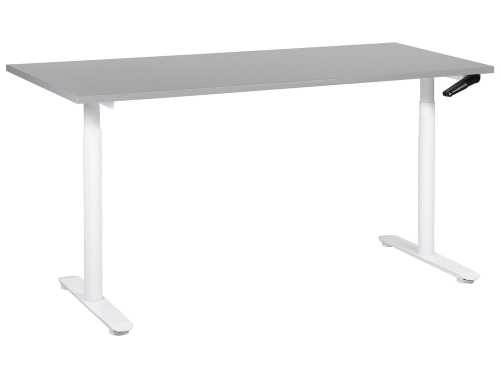 Manually Adjustable Desk Grey Tabletop White Steel Frame 160 x 72 cm Sit and Stand Round Feet Modern Design Office Beliani