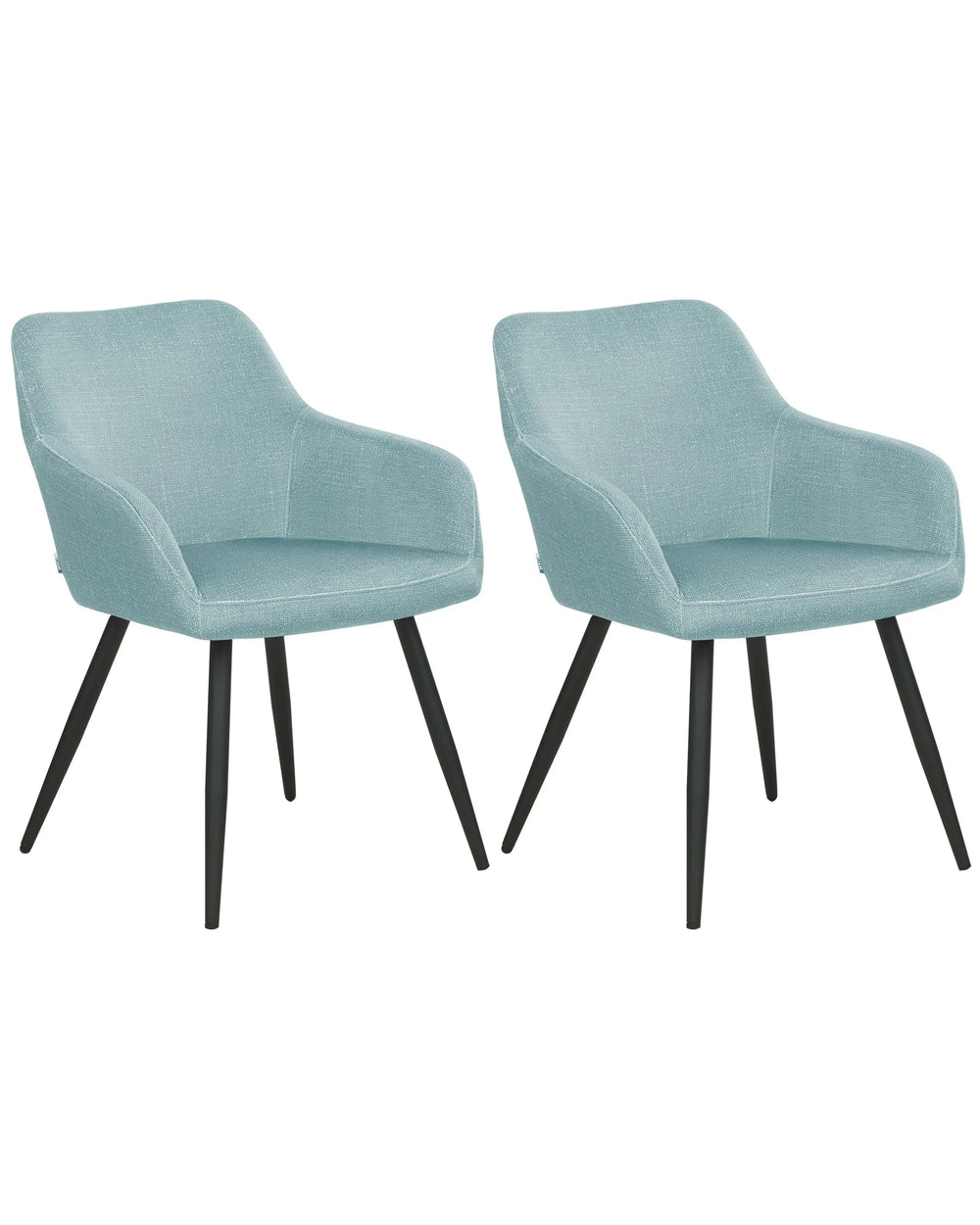 Set of 2 Dining Chairs Light Blue Velvet Fabric Seats Metal Legs for Dining Room Kitchen Beliani