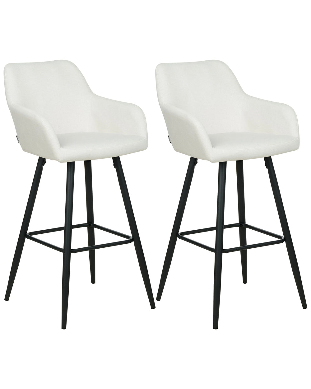 Set of 2 Bar Stool Off-White Velvet Fabric Upholstered With Arms Backrest Black Metal Legs Beliani