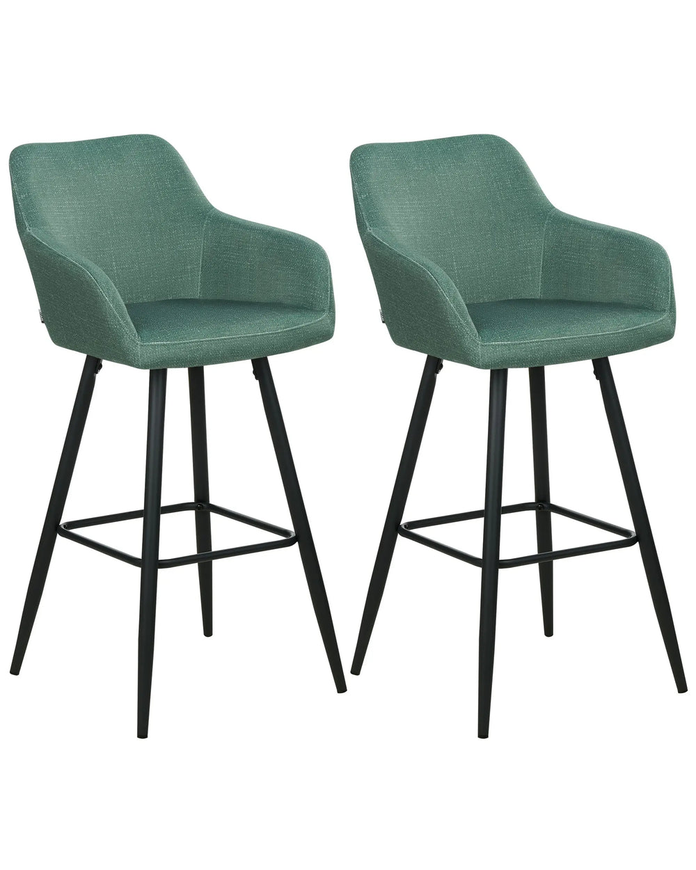 Set of 2 Bar Stool Green Velvet Fabric Upholstered With Arms Backrest Black Metal Legs Beliani